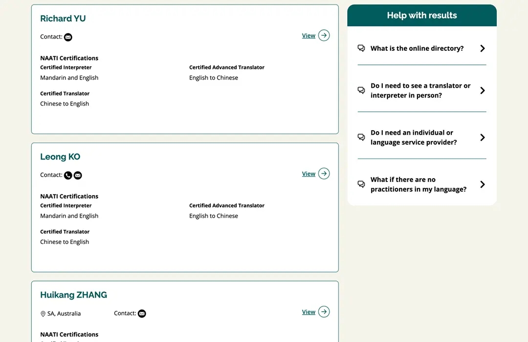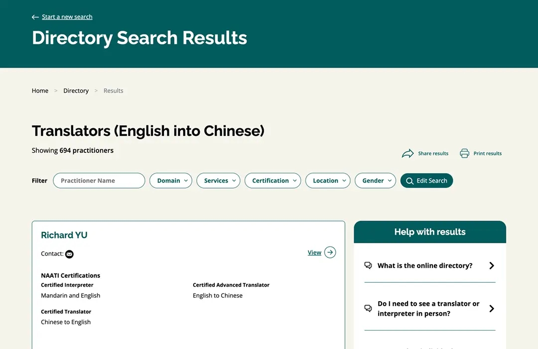 The new NAATI practitioner directory website provides: